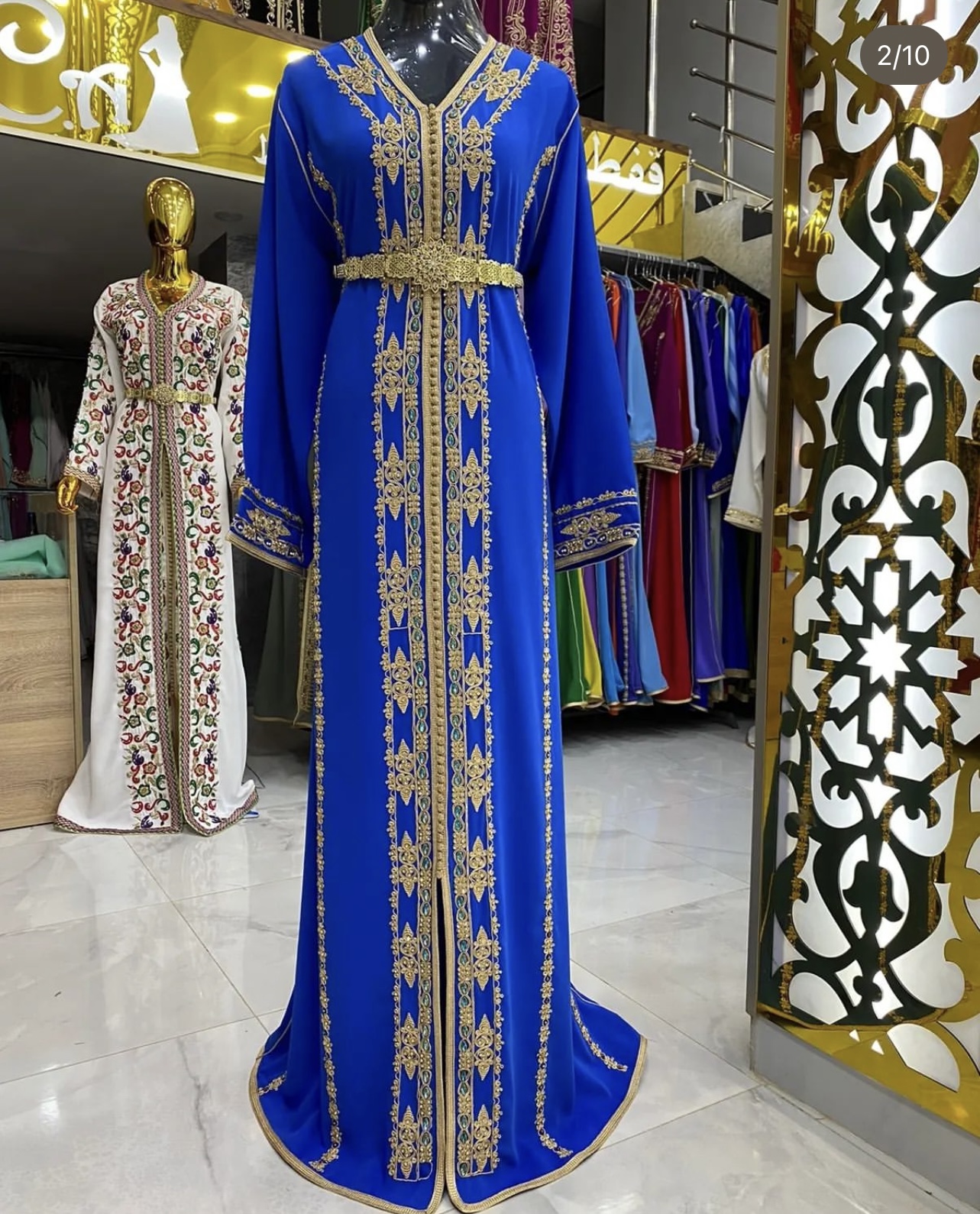 قفطان مغربي تقليدي   قطعة واحدة  لون ازرق ليلي قماش كريب   جودة ممتازة مع تطريز خيوط دهبية للمناسبات متوفر بالقياسات S-M-L-XL-XXL