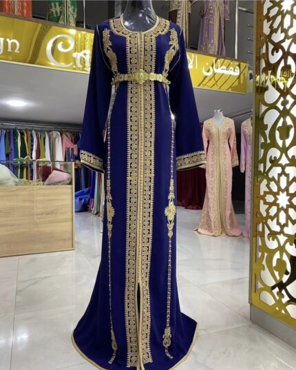 قفطان مغربي تقليدي لون ازرق كحلي تطريز دهبي