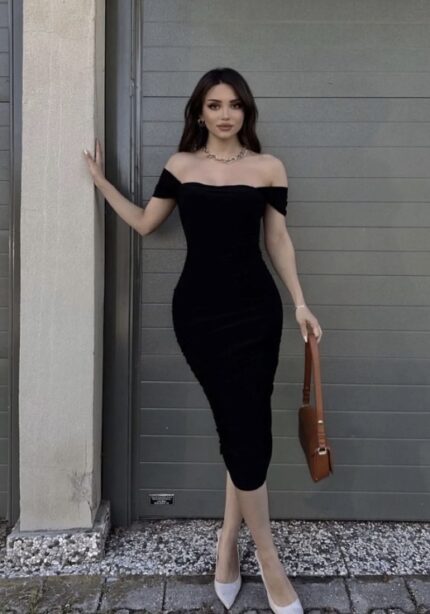 فستان اسود طول وسط